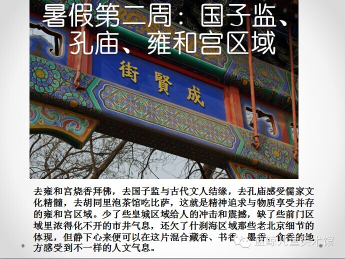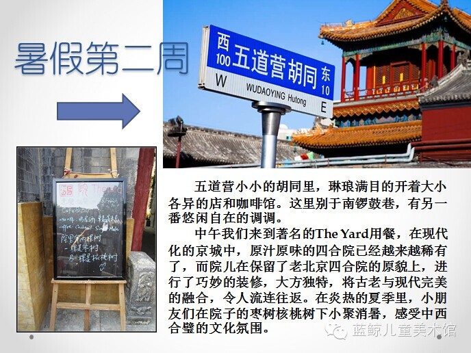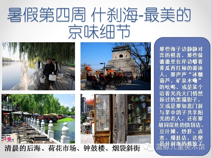 第三,第四周的夏令营要带孩子们胡同窜窜,不论是非常古老的建筑,钟鼓楼里的漆黑深邃,胡同里面的宁静清幽,还是尘封多年的书卷气,在当今的北京找这样一个地方实在是不容易,也实在值得可逛可画。