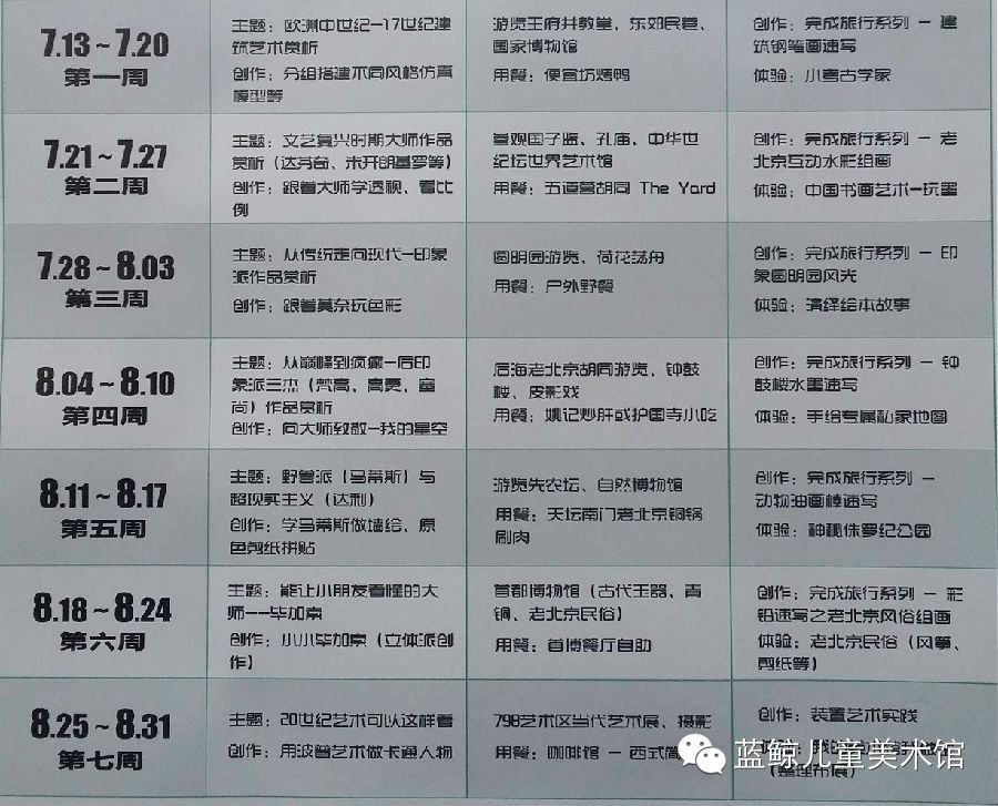 为了方便更多小朋友以及家长了解蓝鲸整整两个月的暑期夏令营计划,我们特别制作了更为直观的游学内容一览。