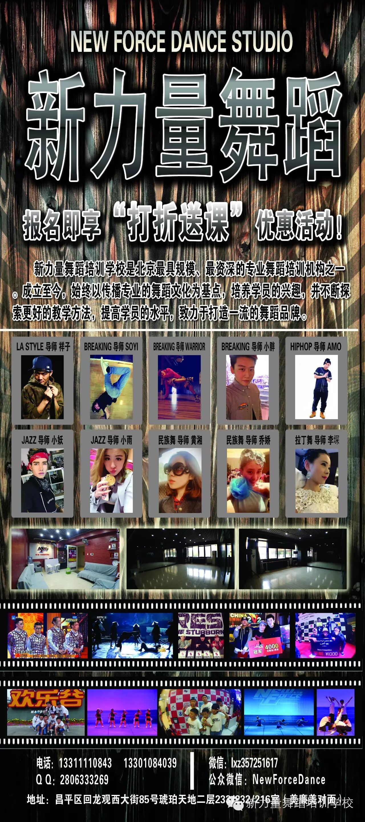 新力量舞蹈培训学校是一家全国直营连锁的专业权威培训机构,先进的教学理念,顶级师资团队,目前开设:少儿街舞、民族舞、拉丁舞、明星班,成人街舞、爵士舞等多种不同风格的舞蹈,本学校与国内外各大舞蹈权威机构、电视台等强强合作,本校学员均有机会参加国内外各大舞蹈比赛、明星艺人伴舞、电视节目录制、电影及宣传片等拍摄,优秀学员我们将保送国外(韩国、美国)深造学习。