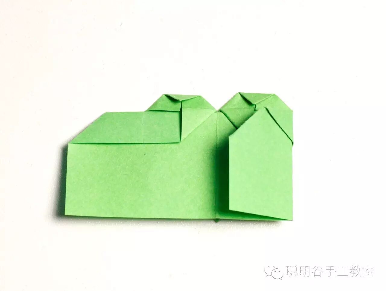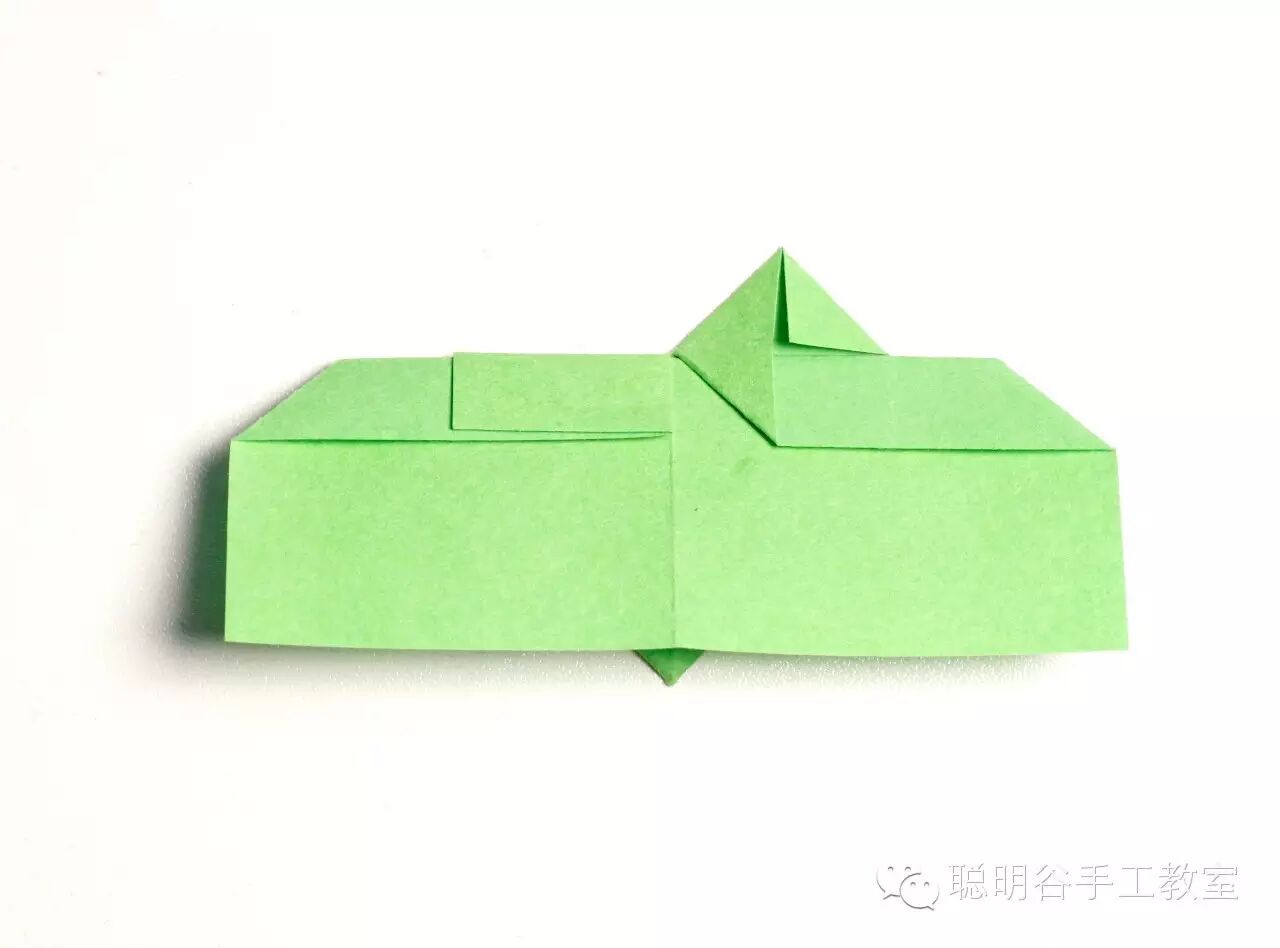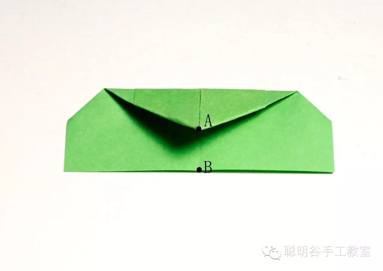 2.其中一条边向下折纸与中线齐平,如图所示。