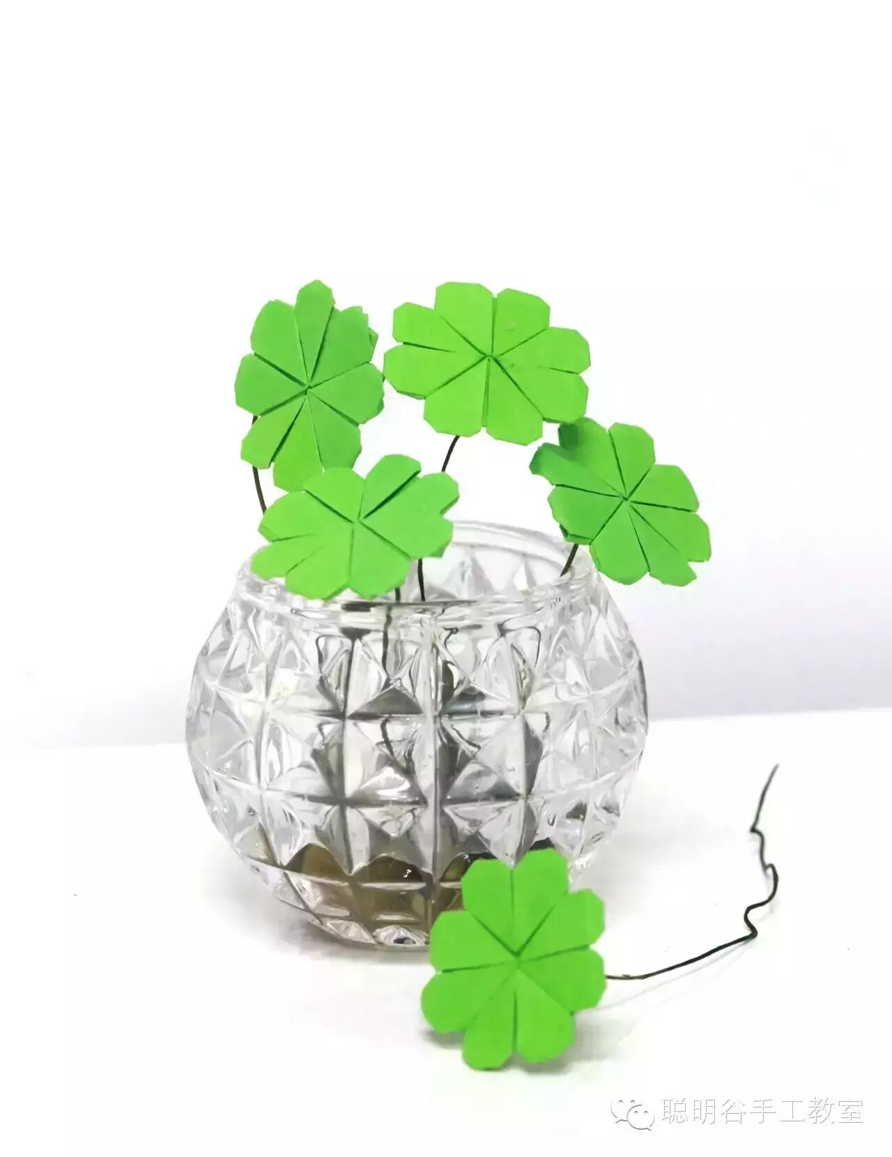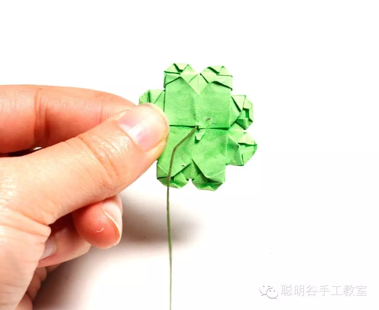 19.细铁丝穿进四叶草底部并用白乳胶粘牢。